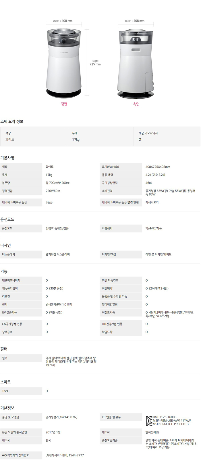 LG SIGNATURE 공기청정기 AW141YBW