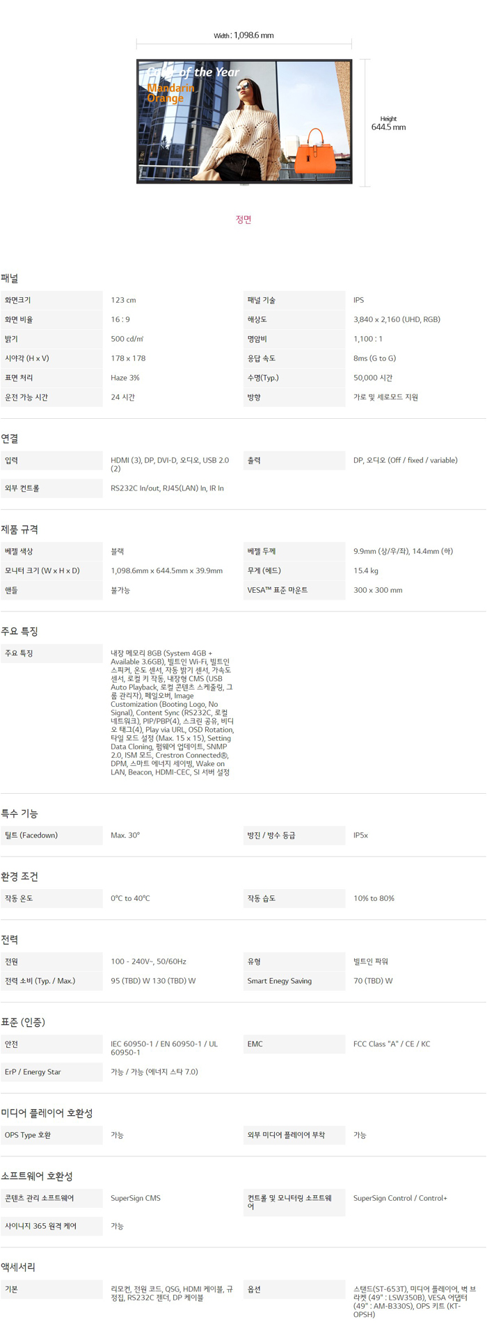 LG 디지털사이니지 LED(울트라HD) 49UH5F-B