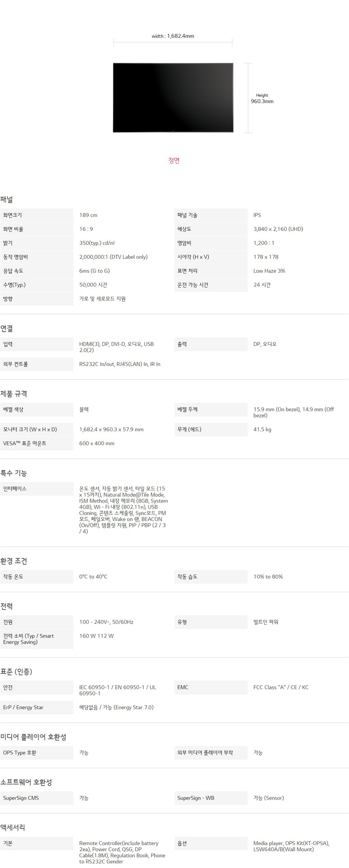 LG 디지털사이니지 LED(울트라HD) 75UM3E-B