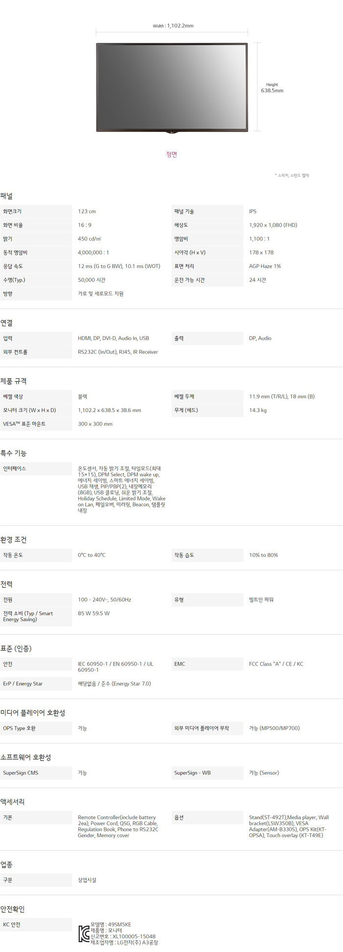 LG 디지털사이니지 LED(FHD) 49SM5KE-B