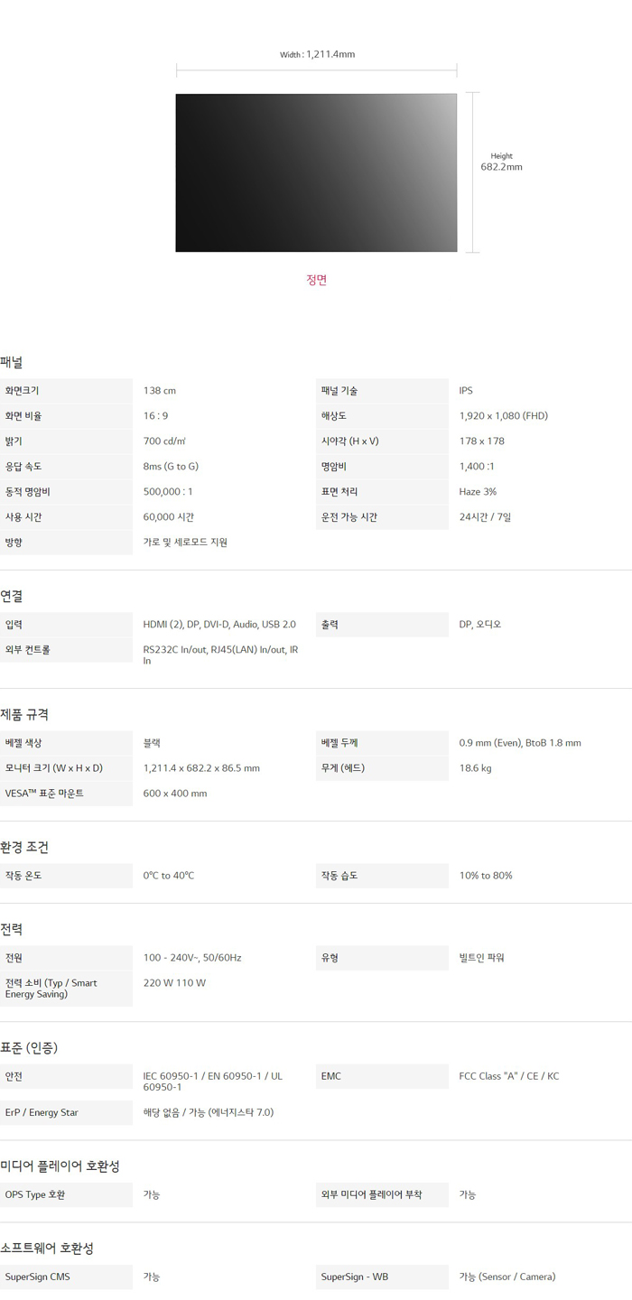 LG 디지털사이니지 Video Wall 55VH7E-A