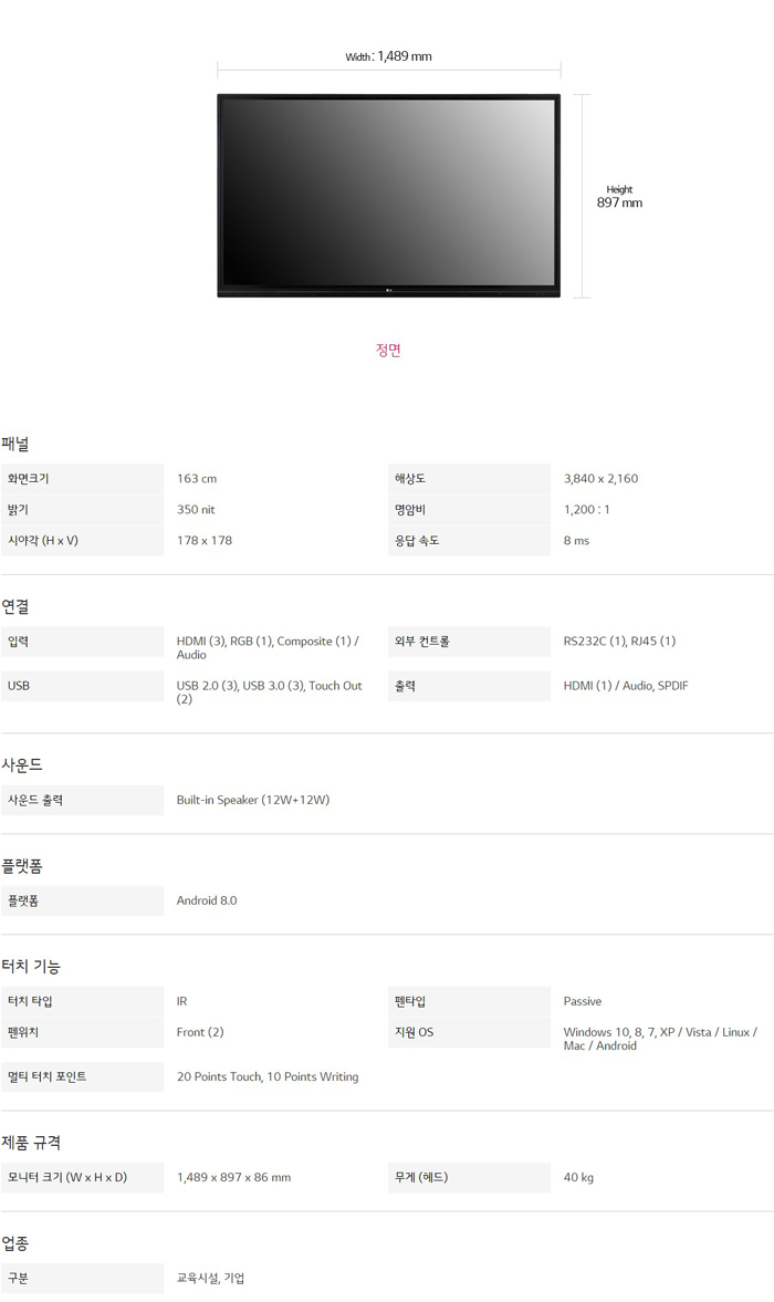LG 인터랙티브 디지털보드 65TR3BF-B
