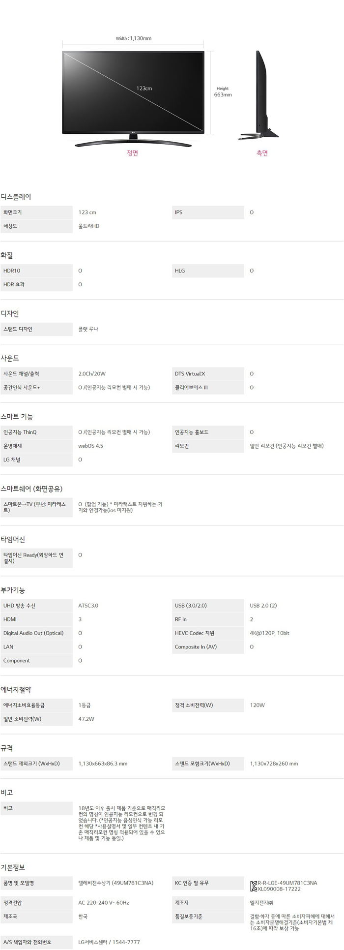 LG 울트라 HD TV AI ThinQ 49UM781C