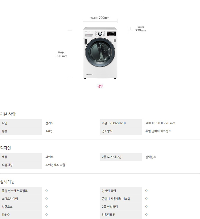 LG 전기식 건조기 (듀얼 인버터 히트펌프) RH14WN