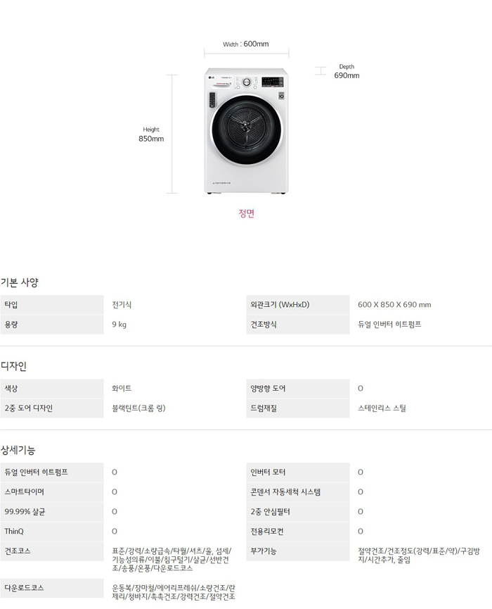 건조방식 : 듀얼 인버터 히트펌프