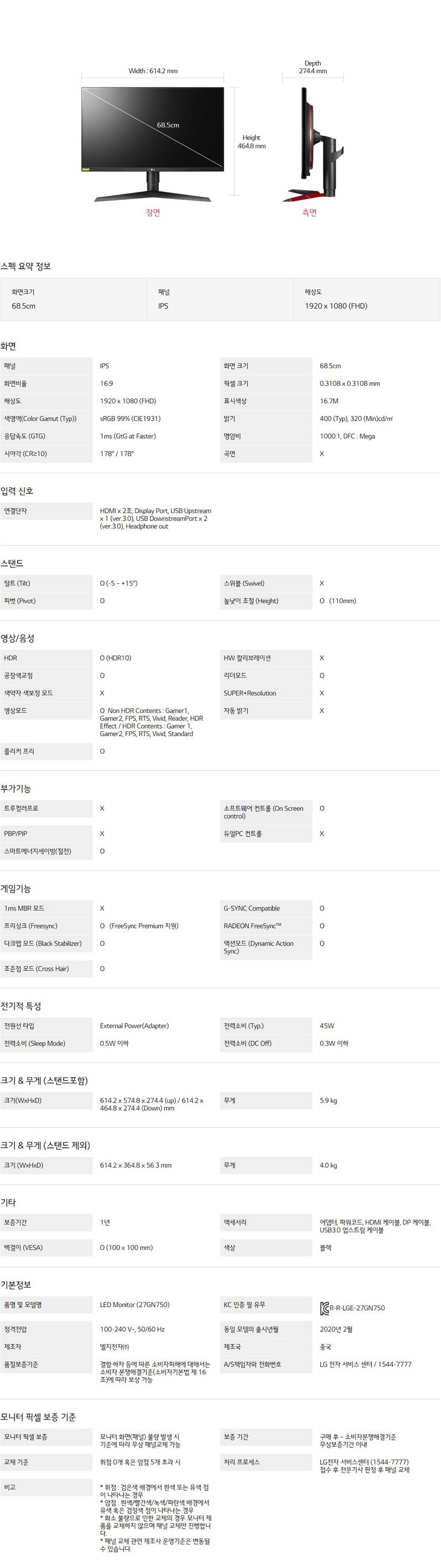 밝기 : 400 (Typ), 320 (Min) cd/㎡