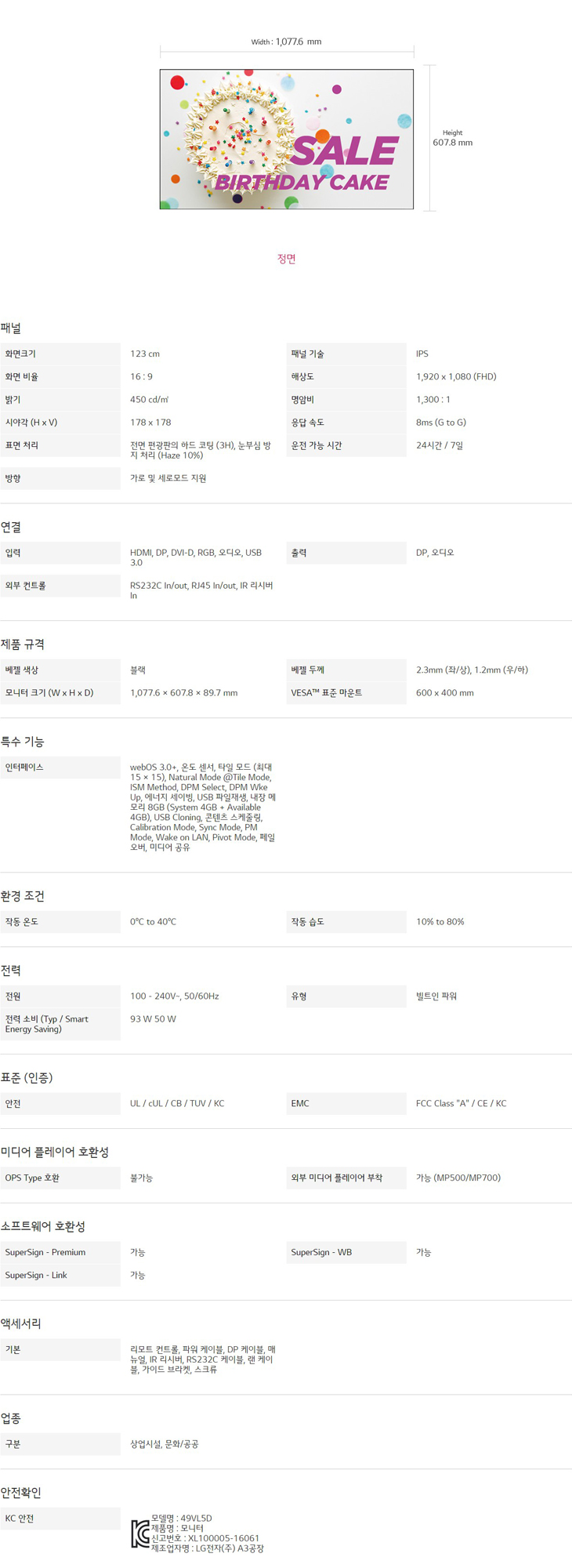 화면크기 : 49형