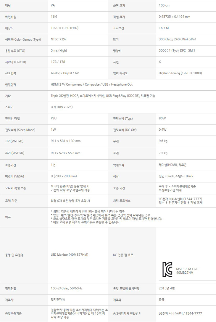 LG IPTV 모니터 40MB27HM