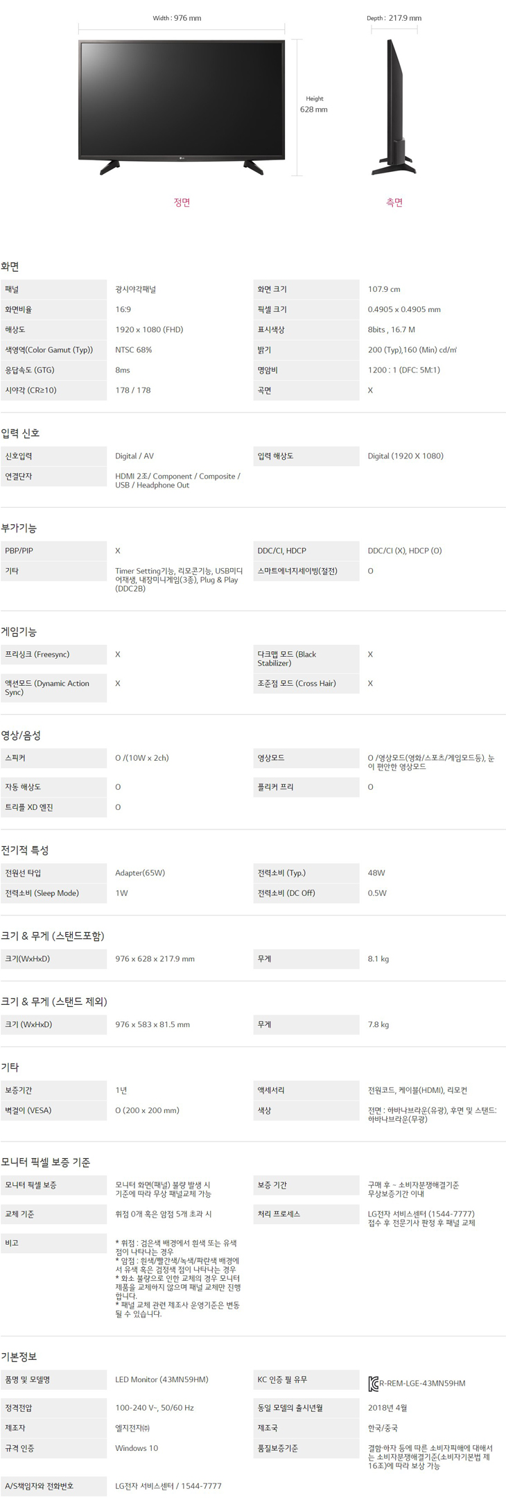 LG IPTV 모니터 43MN59HM