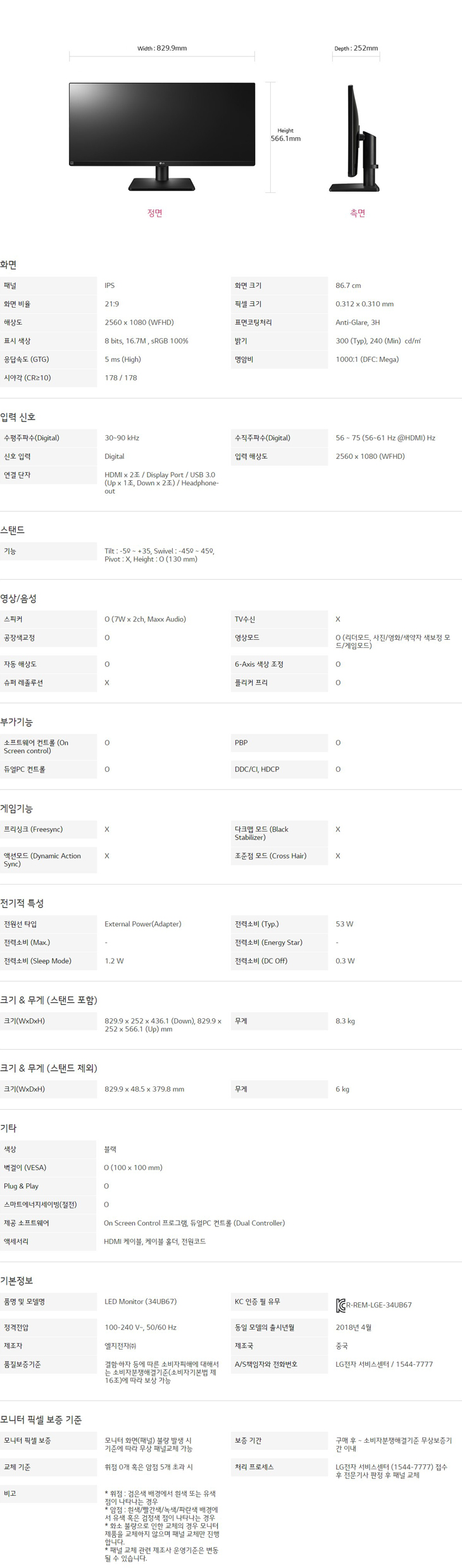 LG 울트라와이드 모니터 34UB67