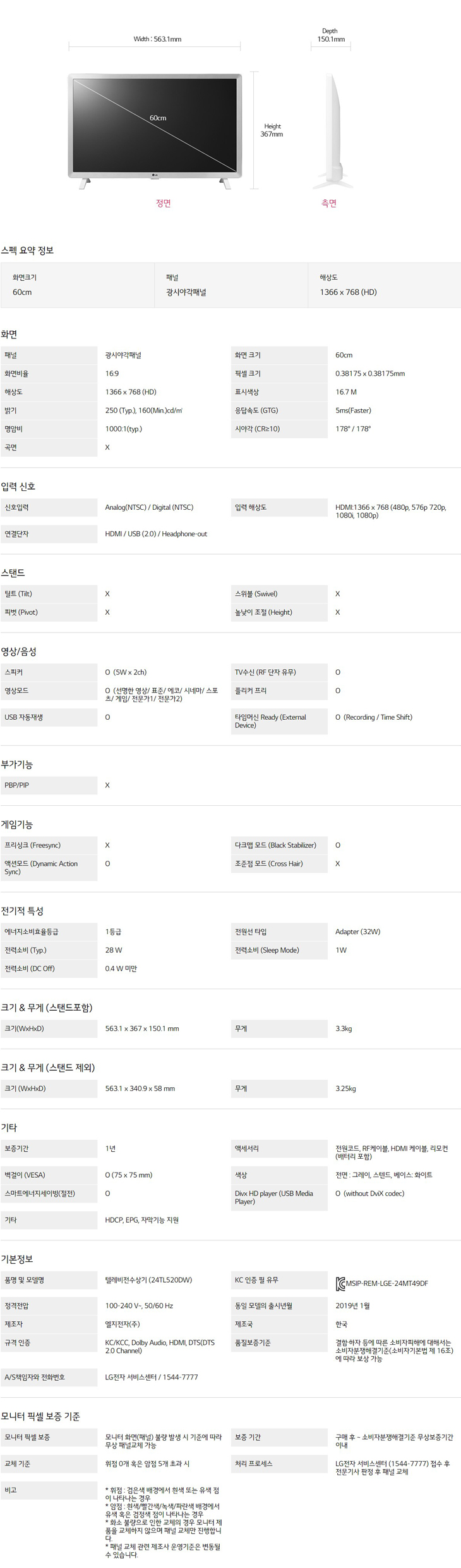 LG TV 모니터 24TL520DW