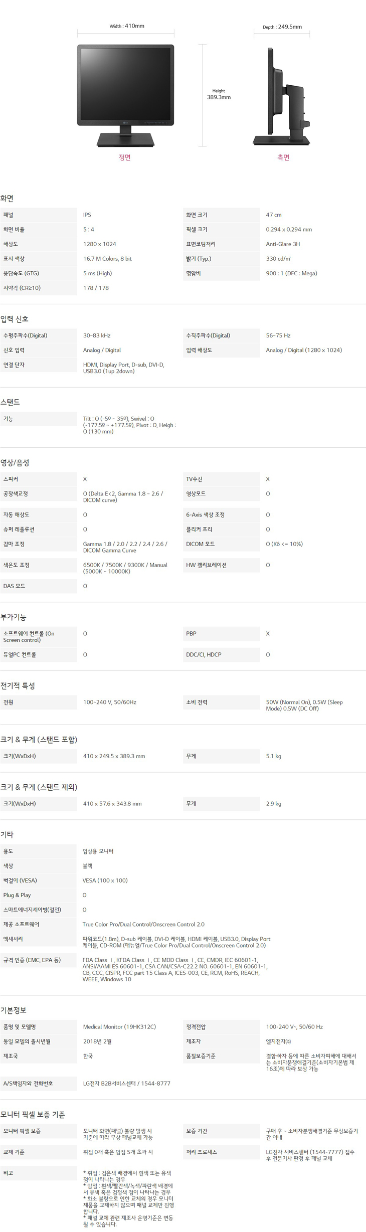 LG 의료용 모니터 19HK312C
