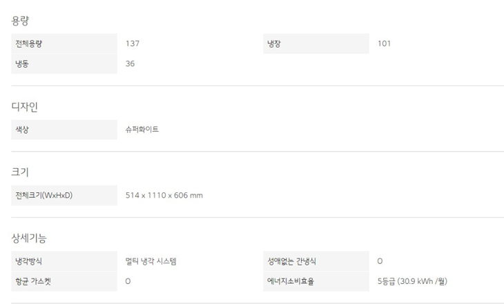 냉장 용량 : 101L