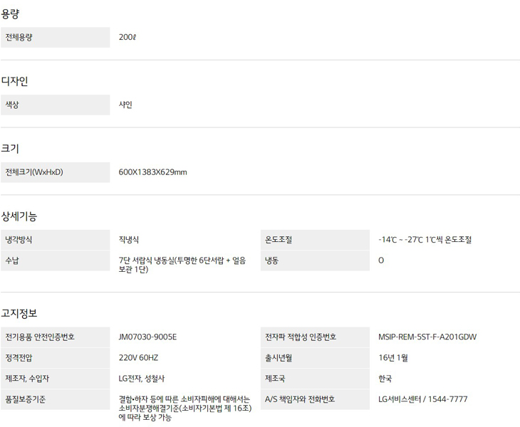 온도조절 : -14℃ ~ -27℃ 1℃씩 온도조절