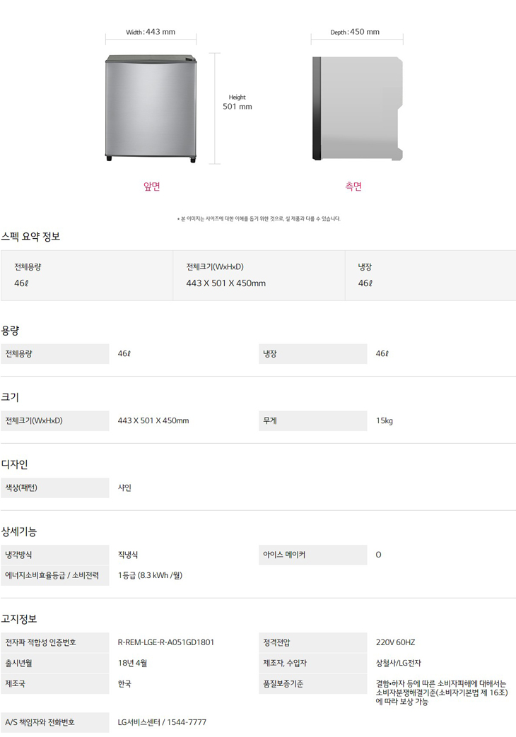 전체크기(WxHxD) : 443 X 501 X 450 mm