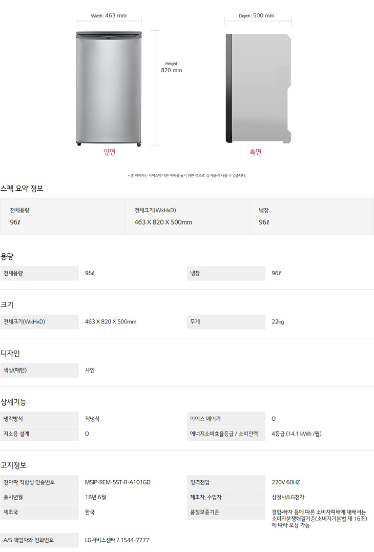 전체크기(WxHxD) : 463 X 820 X 500 mm