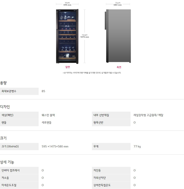 크기 (WxHxD):595 ×1475×580 mm