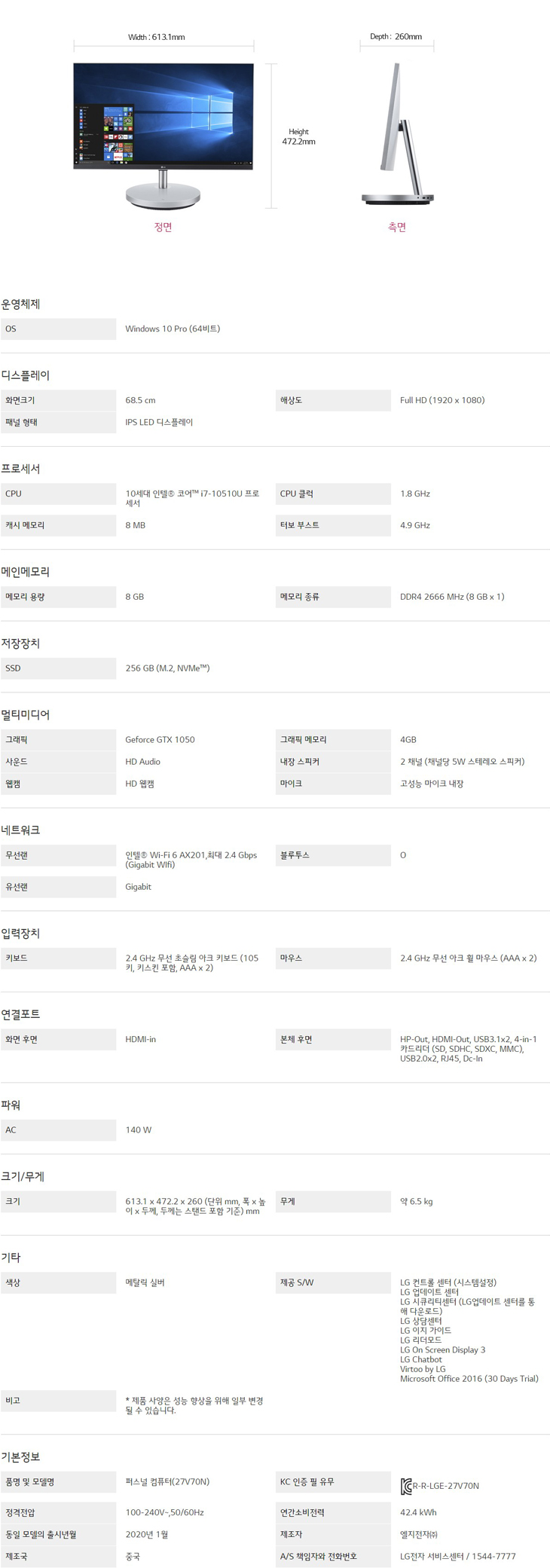 LG 일체형 PC 27V70N-PP70L