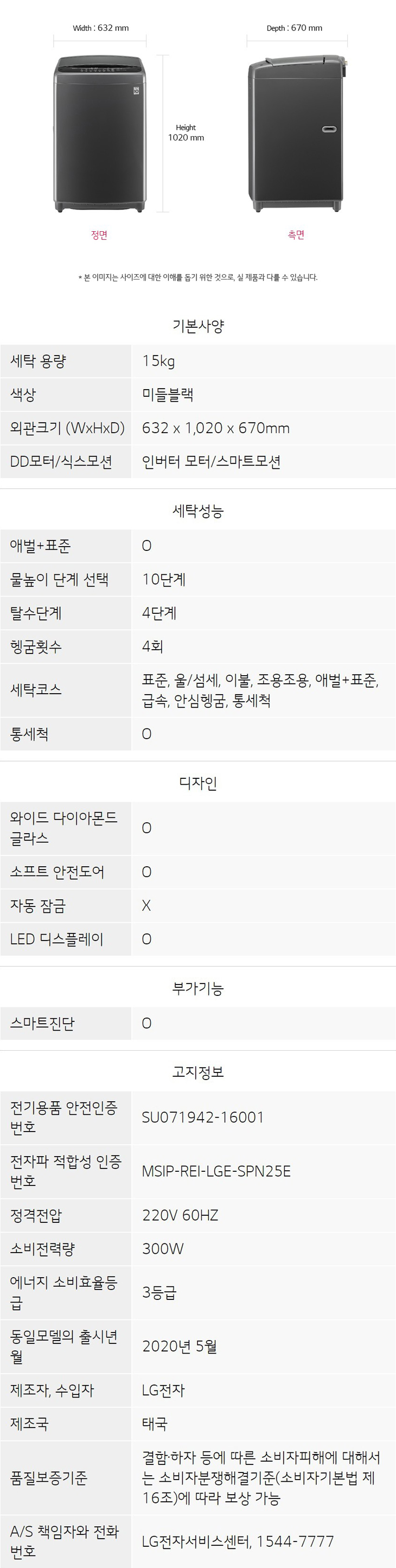 세탁용량 : 15kg