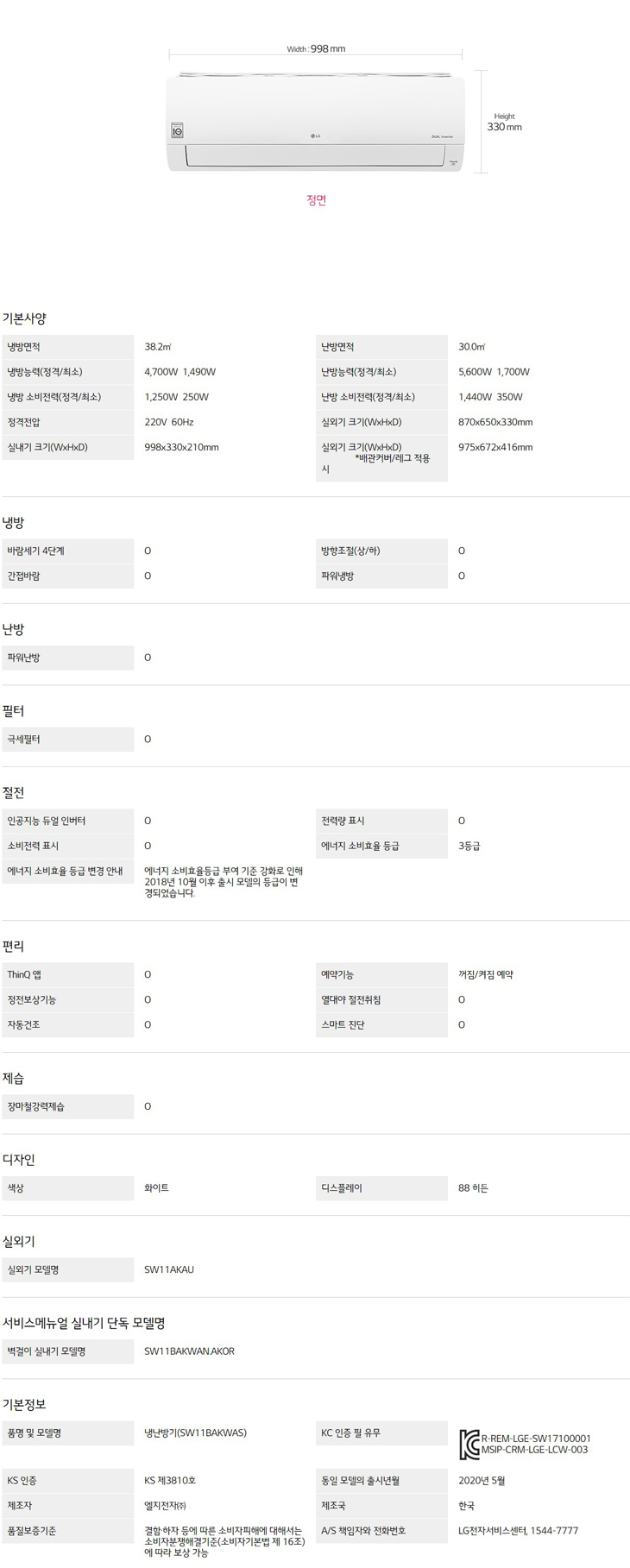 LG 휘센 벽걸이형 냉난방 에어컨 SW11BAKWAS