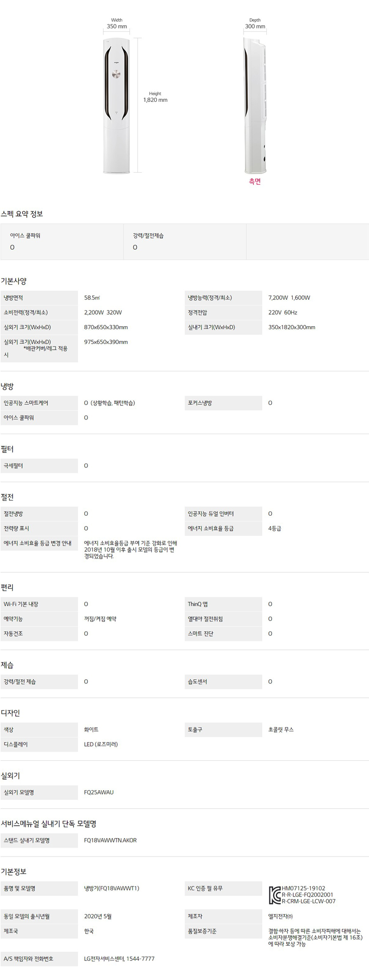 실내기 크기(WxHxD) : 350x1820x300 mm