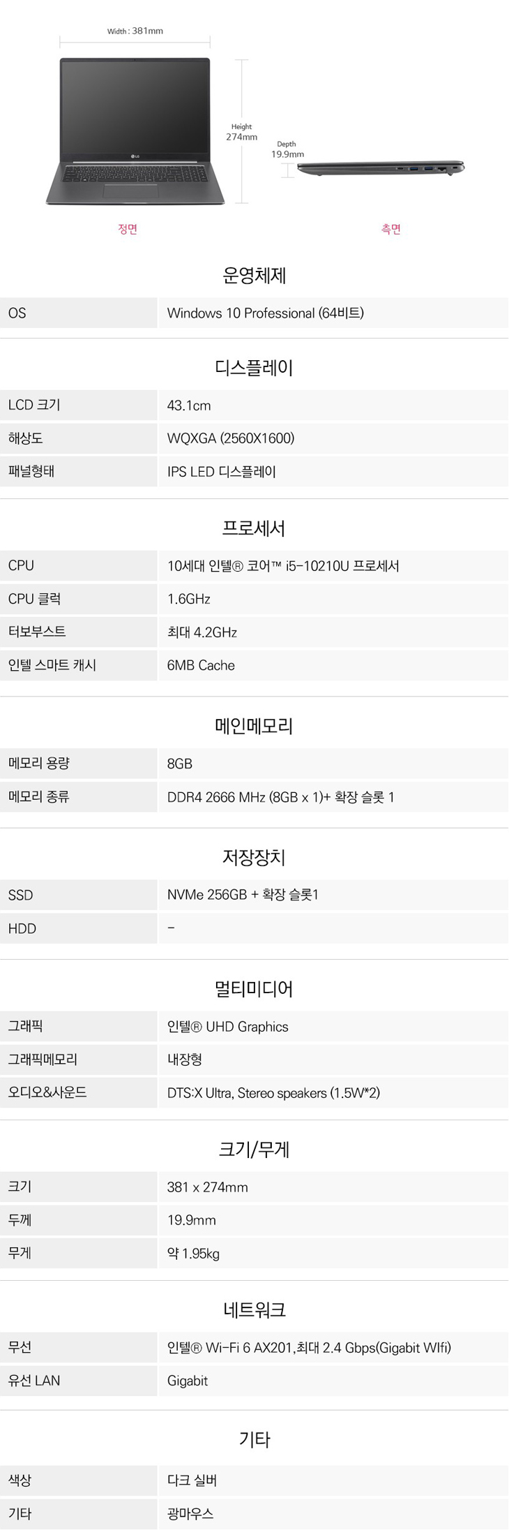 디스플레이 : 17.0" WQXGA IPS
