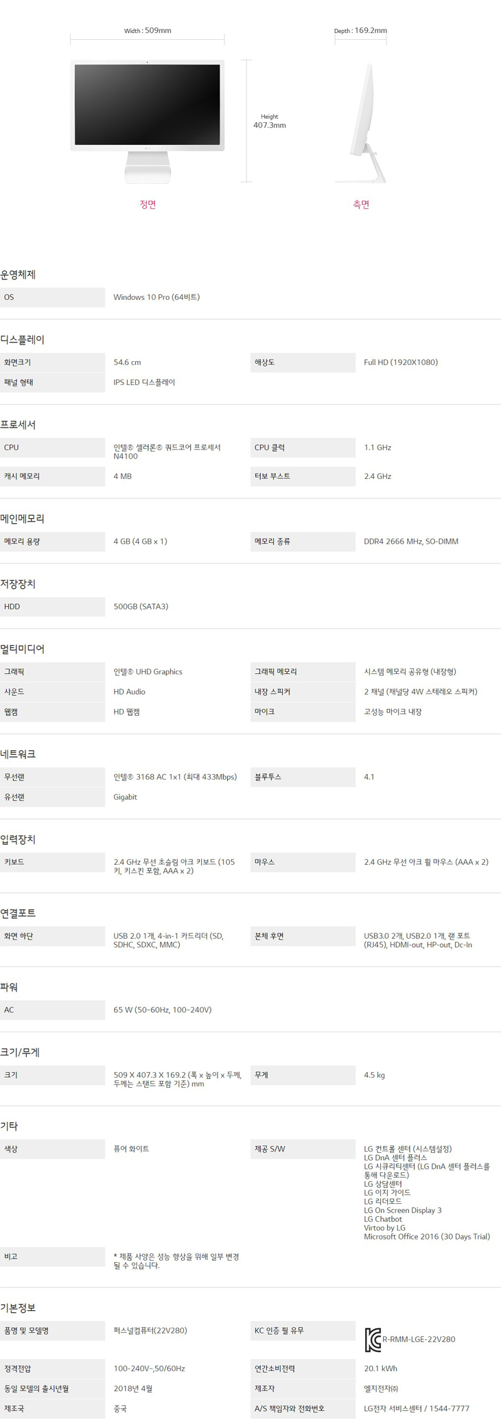 LG 일체형PC 22V280-LP21L
