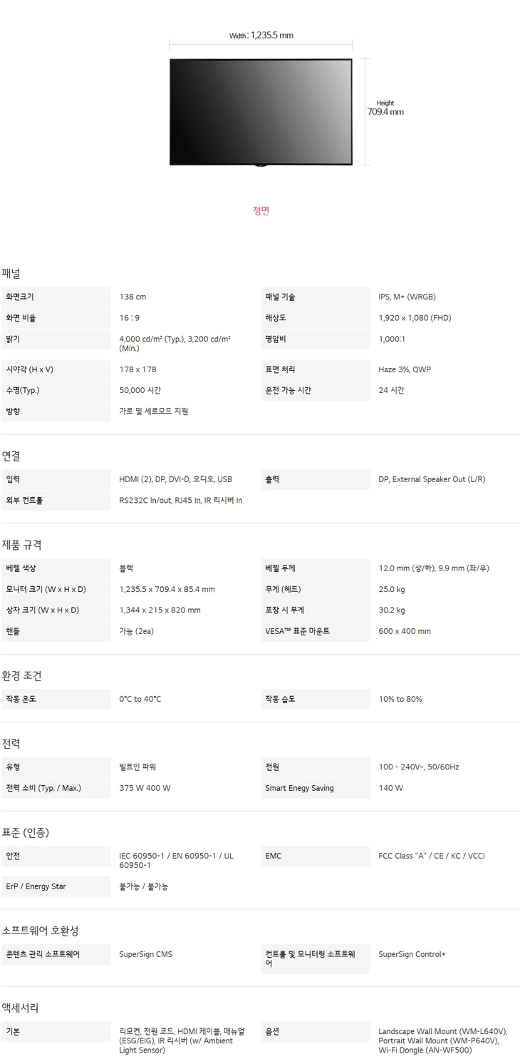 밝기 : 4,000 cd/m² (Typ.), 3,200 cd/m² (Min.)