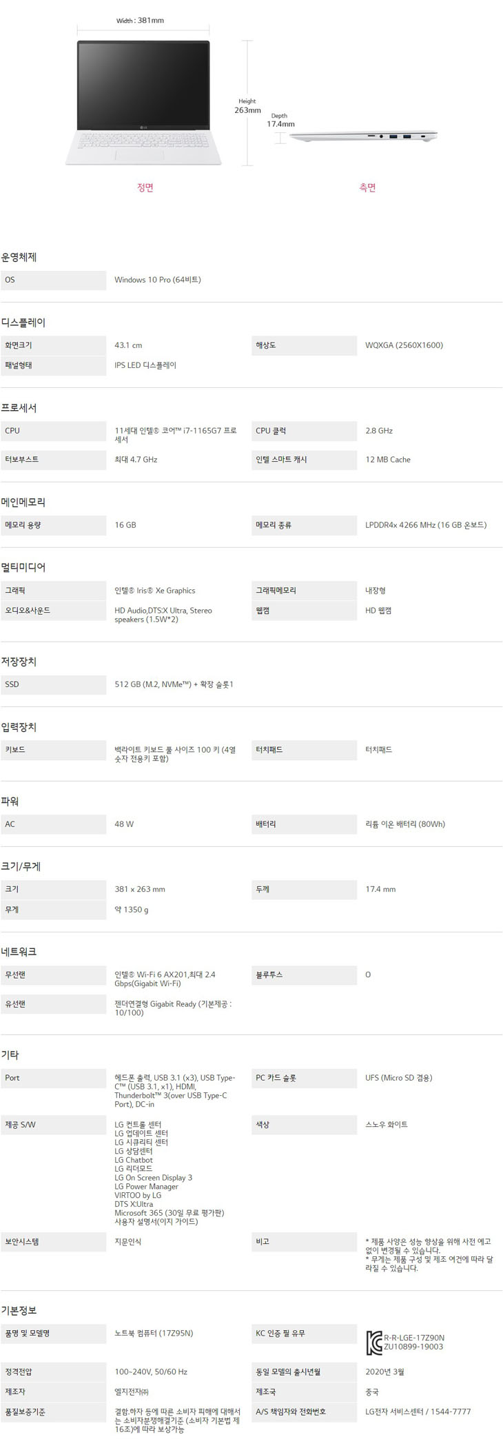 CPU : 11세대 인텔 코어 I7-1165G7 프로세서