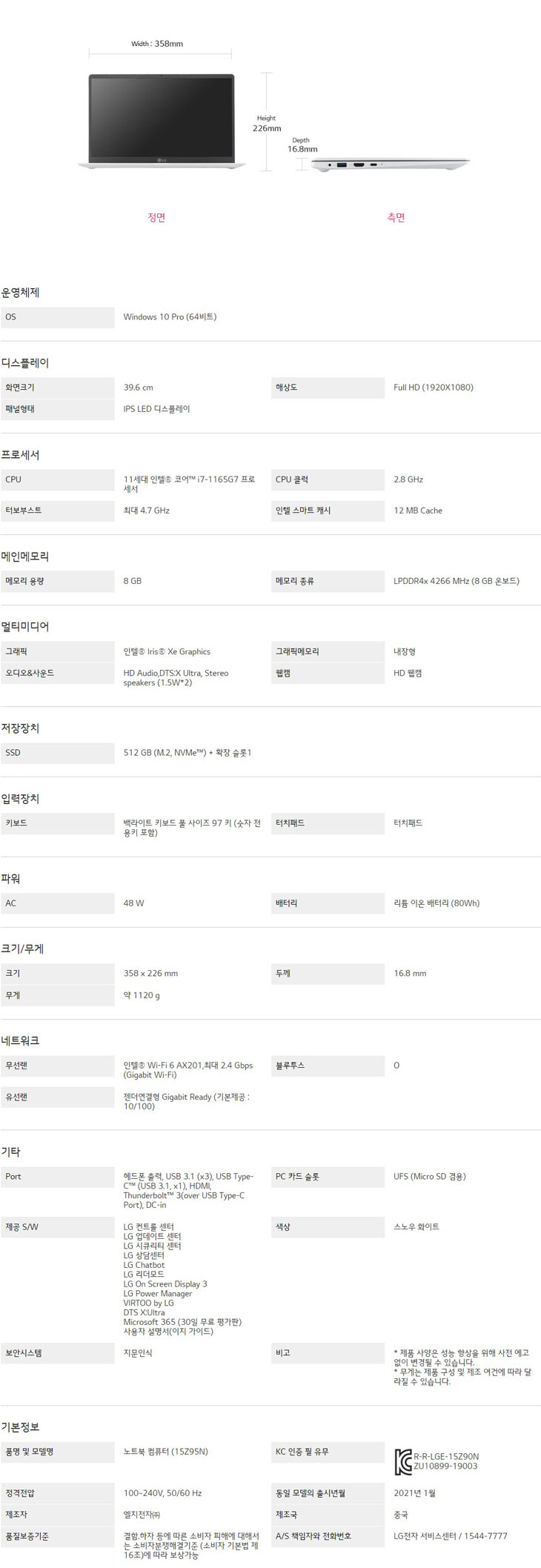 CPU : 11세대 인텔 코어 I7-1165G7 프로세서