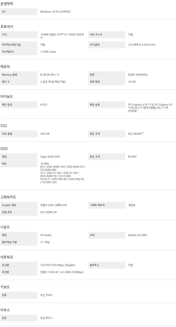 MEMORY 용량 : 8 GB (8 GB X 1)