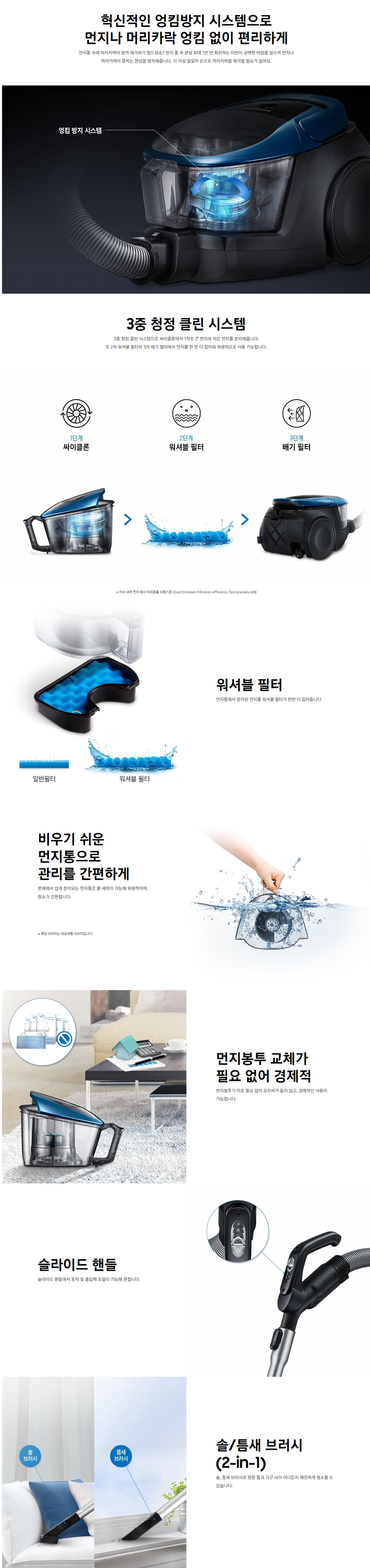 | 먼지통 | 집진 타입 | Bagless(안티 탱글 싸이클론) |