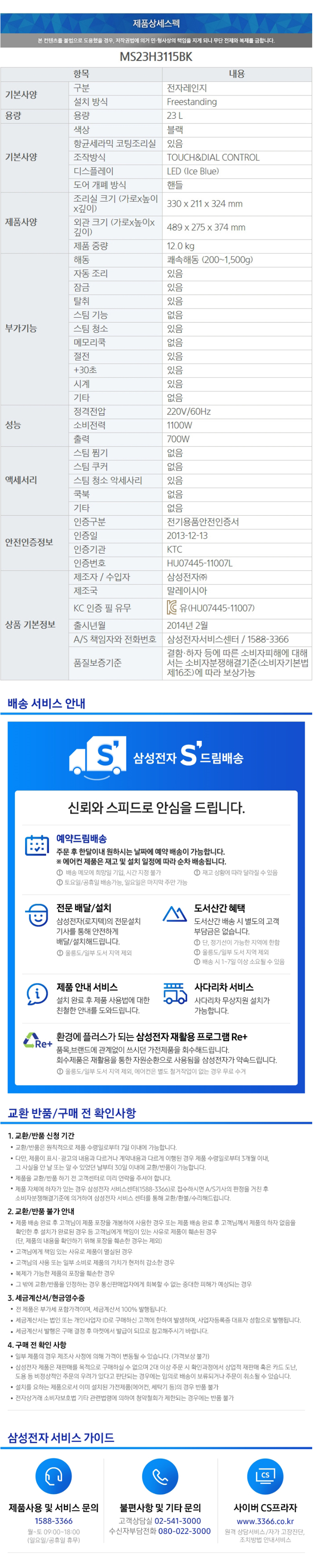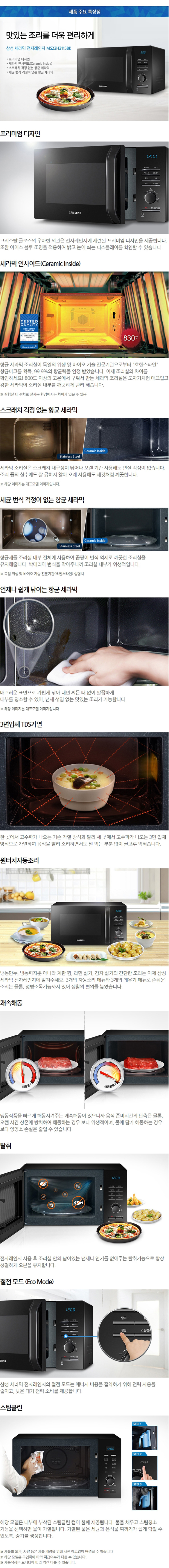 삼성 세라믹 전자레인지 23 L MS23H3115BK
