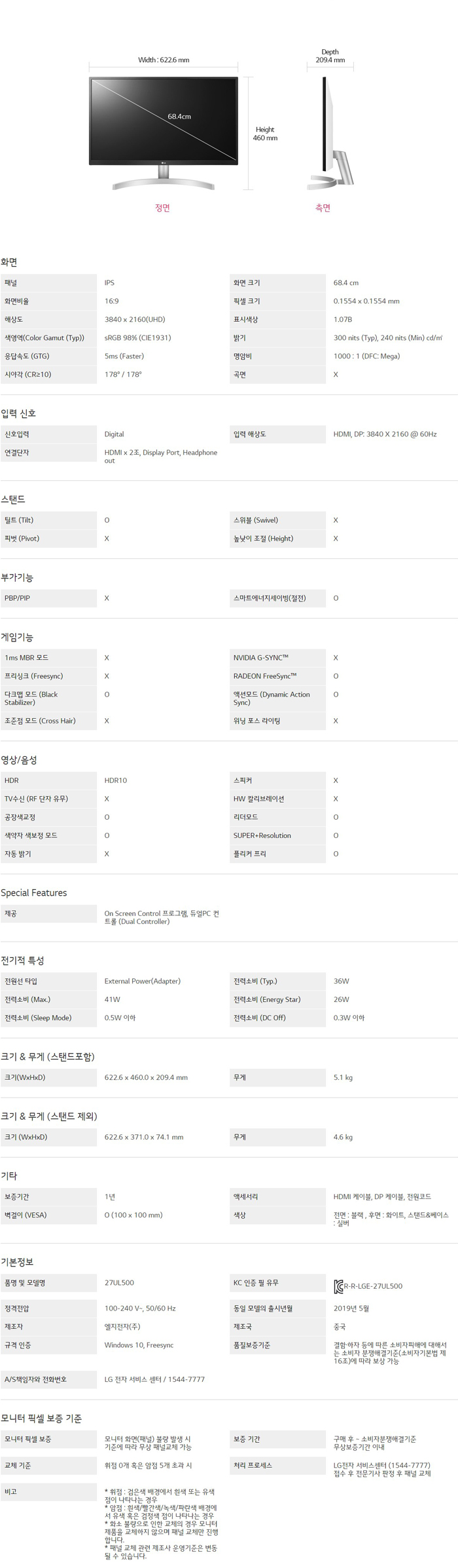 밝기 : 300 (Typ), 240 (Min) cd/㎡