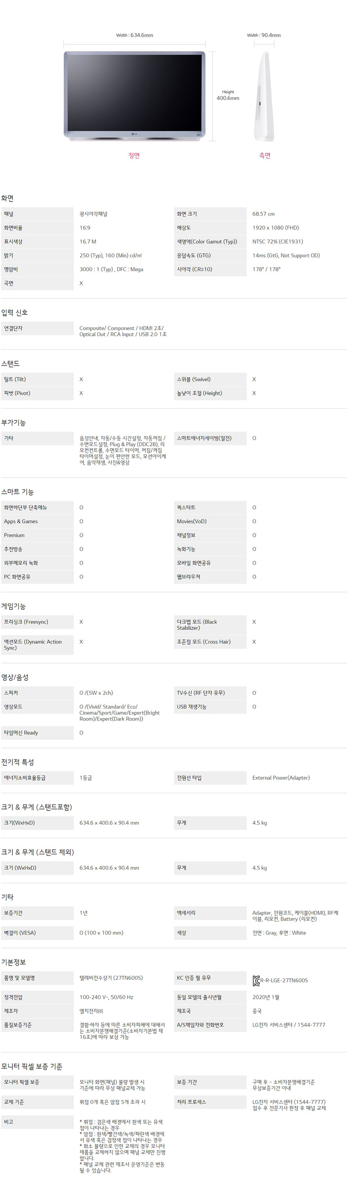 밝기 : 250 (Typ), 160 (Min) cd/㎡