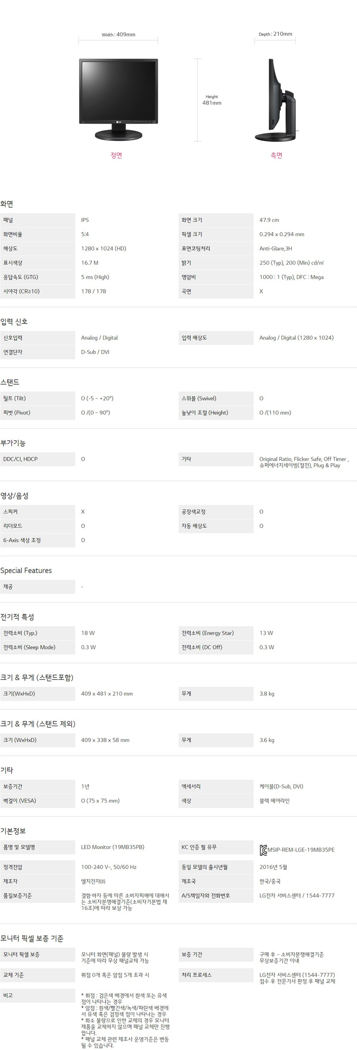 LG PC모니터 19MB35PB