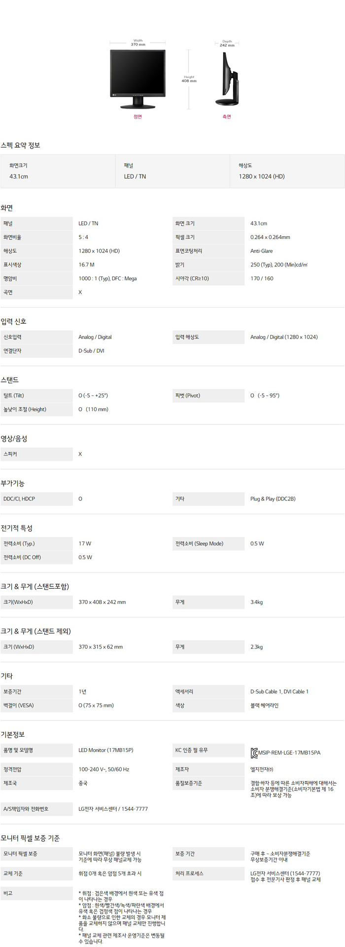 LG PC모니터 17MB15P