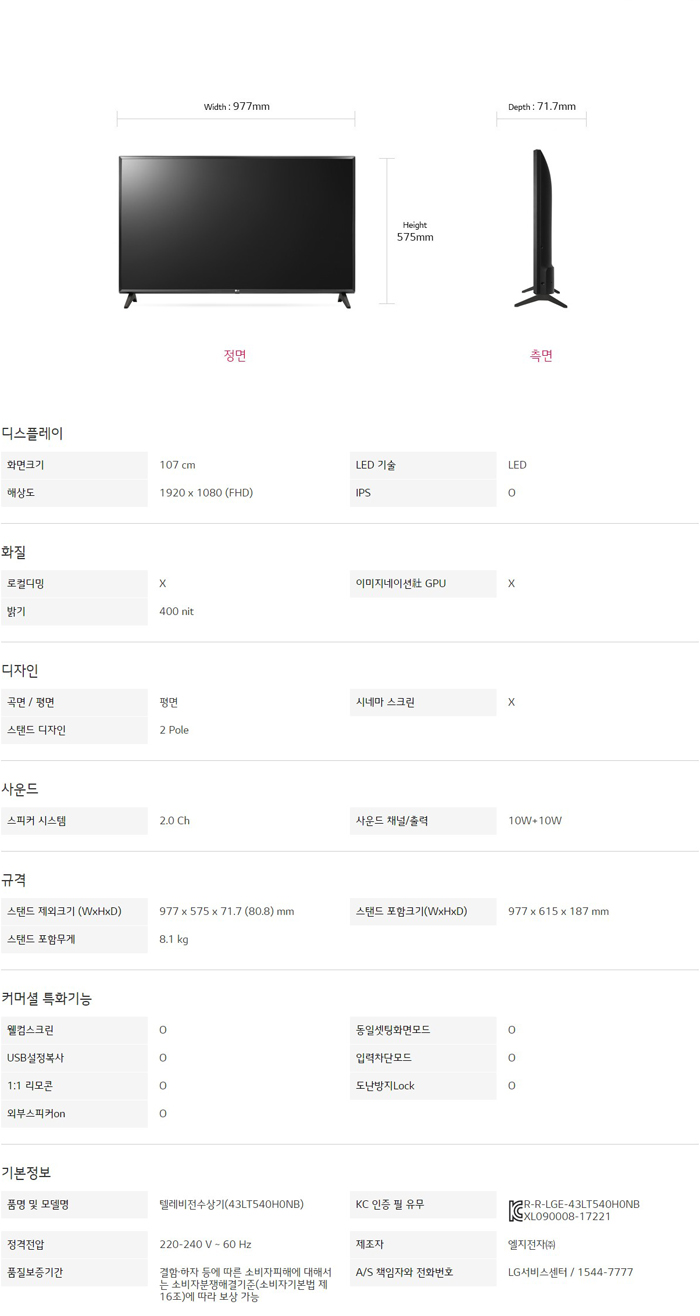 LG 커머셜 TV (호텔) 43LT540H
