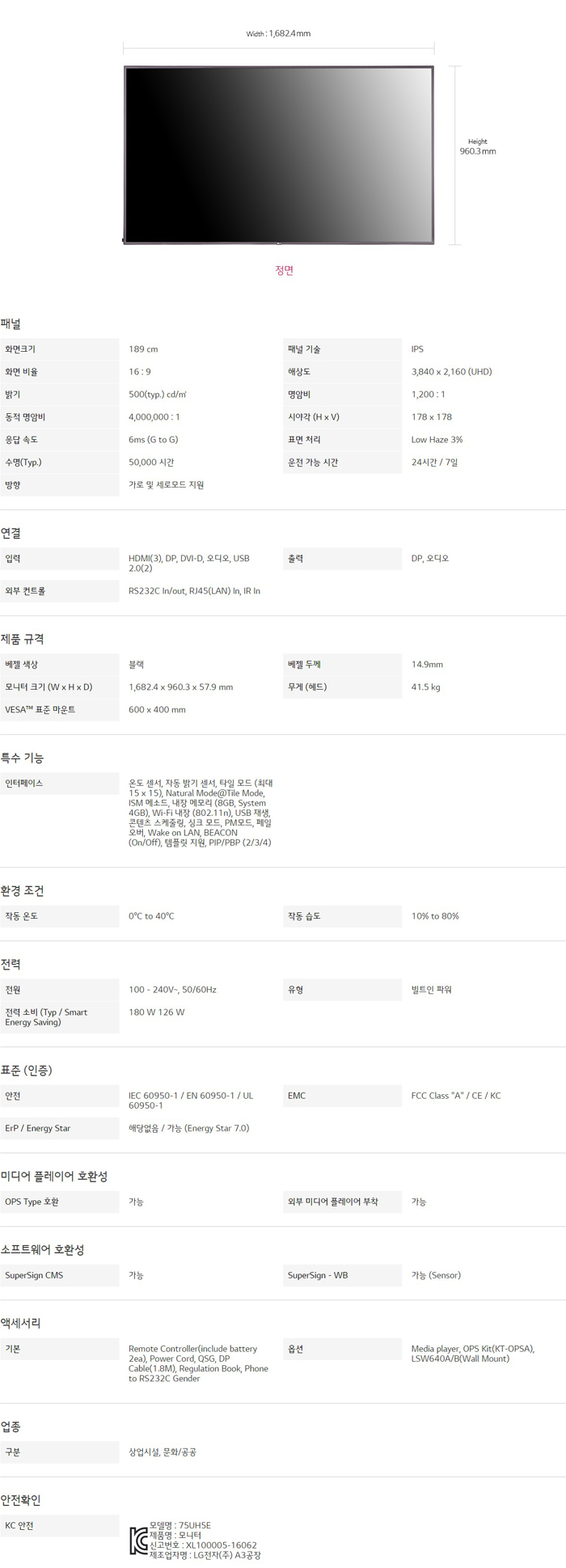 LG 디지털사이니지 LED(울트라HD) 75UH5E-B