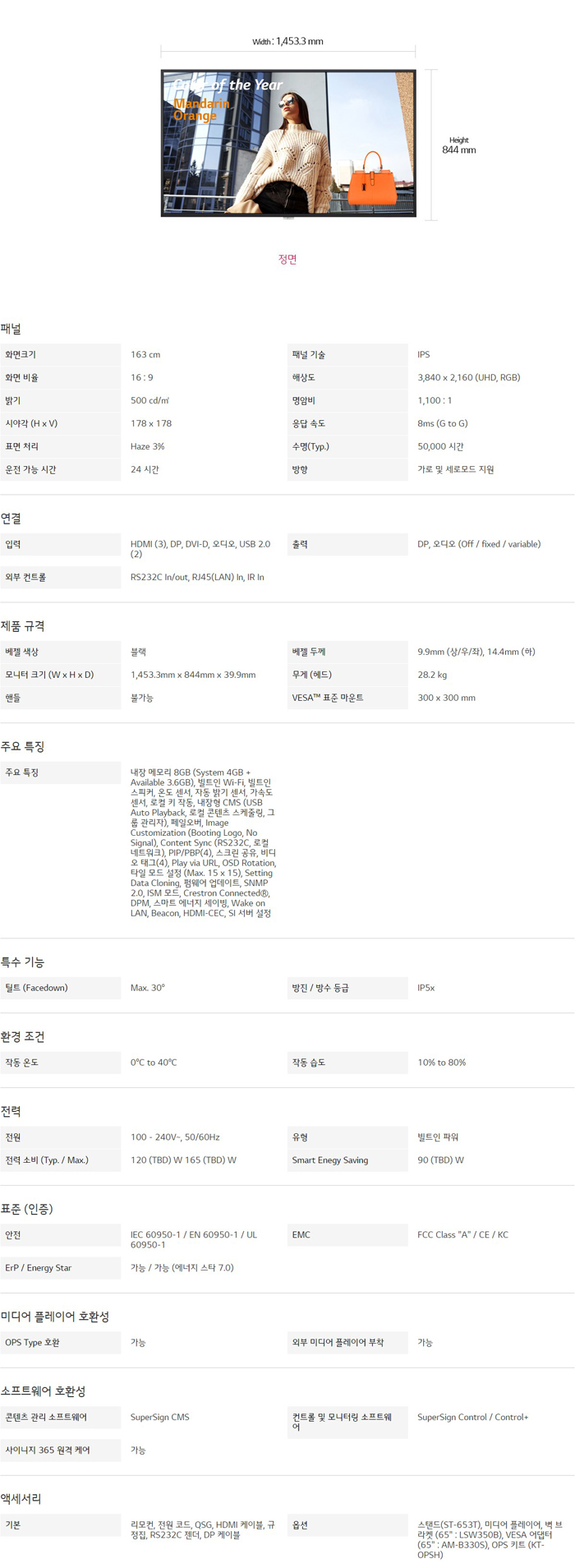 LG 디지털사이니지 LED(울트라HD) 65UH5F-B