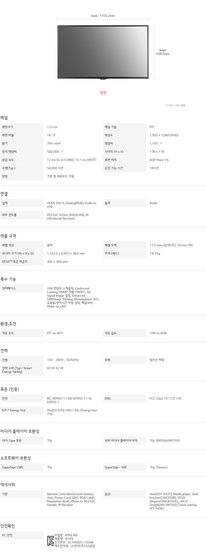 LG 디지털사이니지 LED(FHD) 49SE3KE-B
