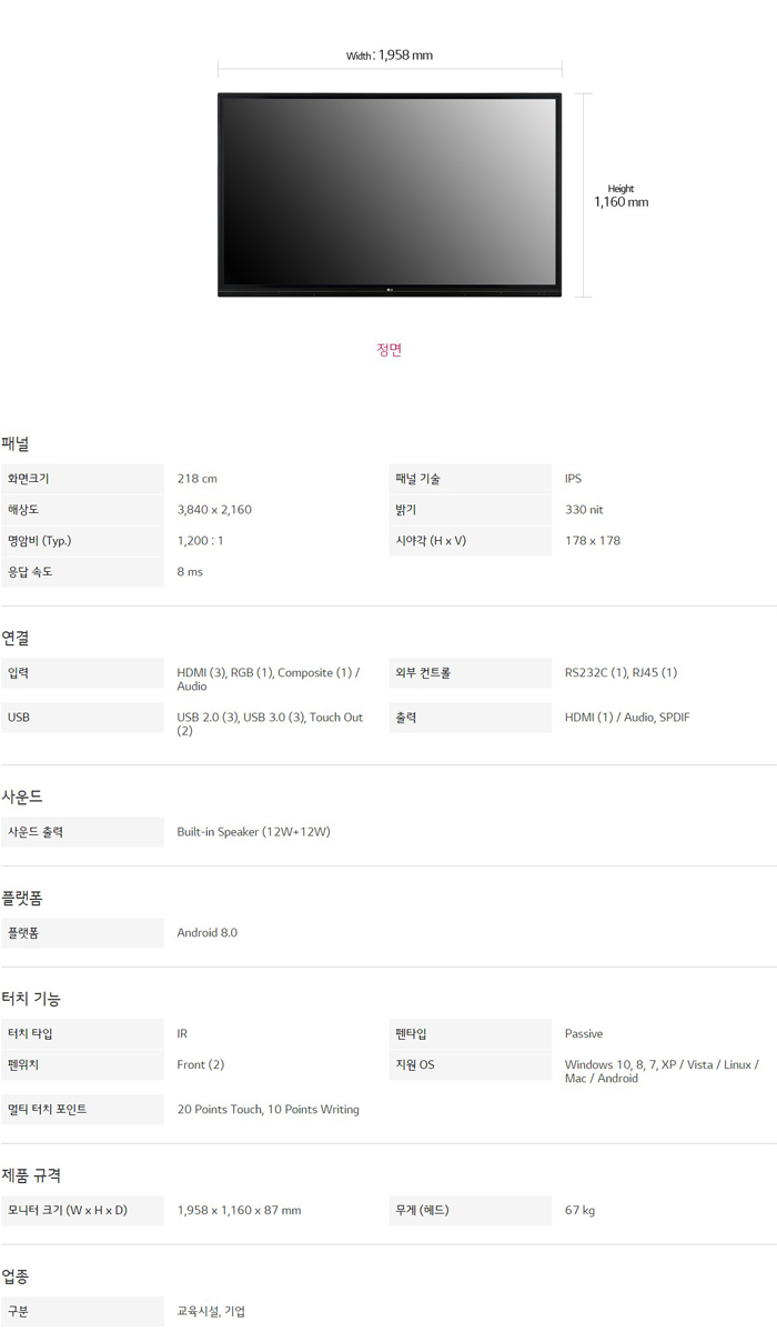 LG 인터랙티브 디지털보드 86TR3BF-B