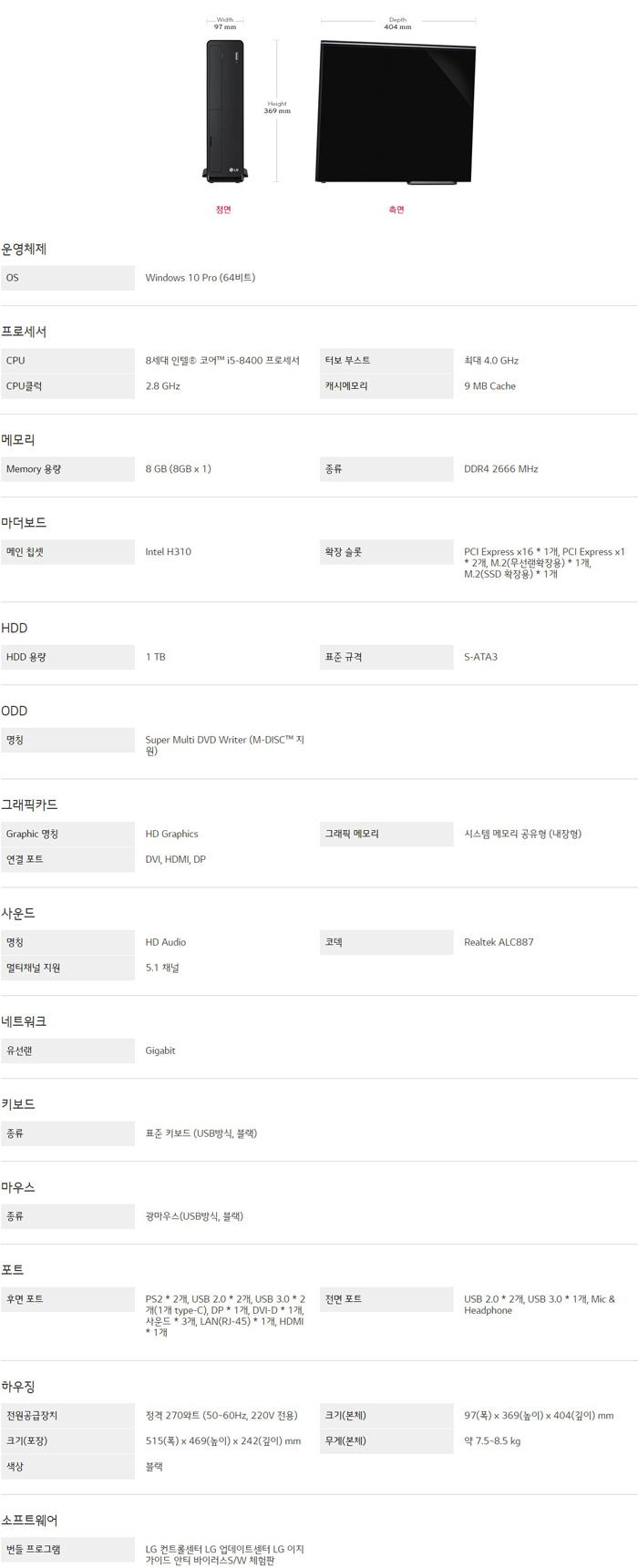 LG 데스크톱 Z80 - 슬림형PC Z80FV.AP5Y1KE