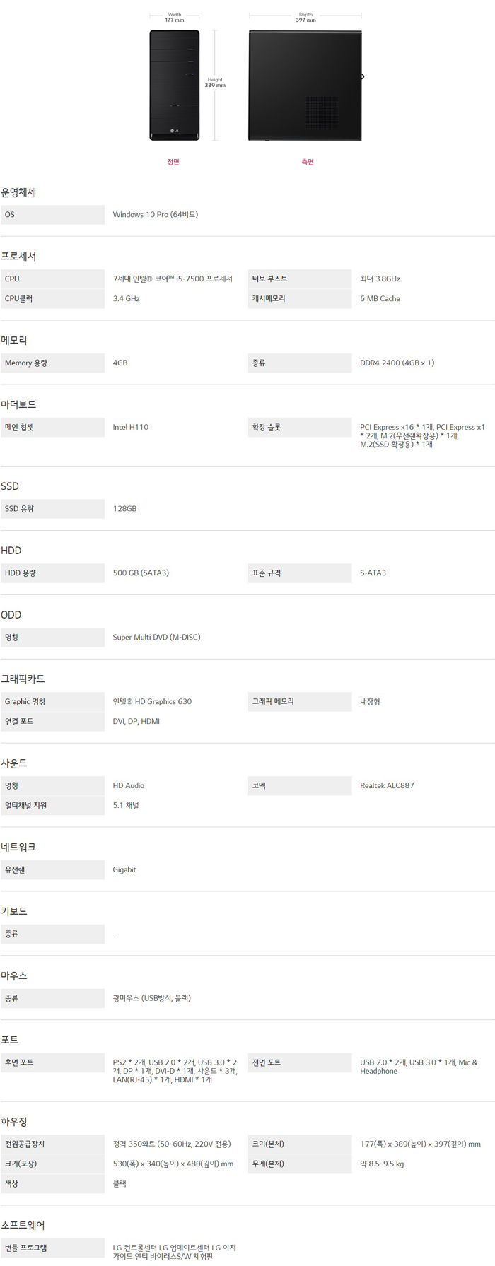 LG 데스크톱 B70 - 타워형PC B70EV.AP5WSKE
