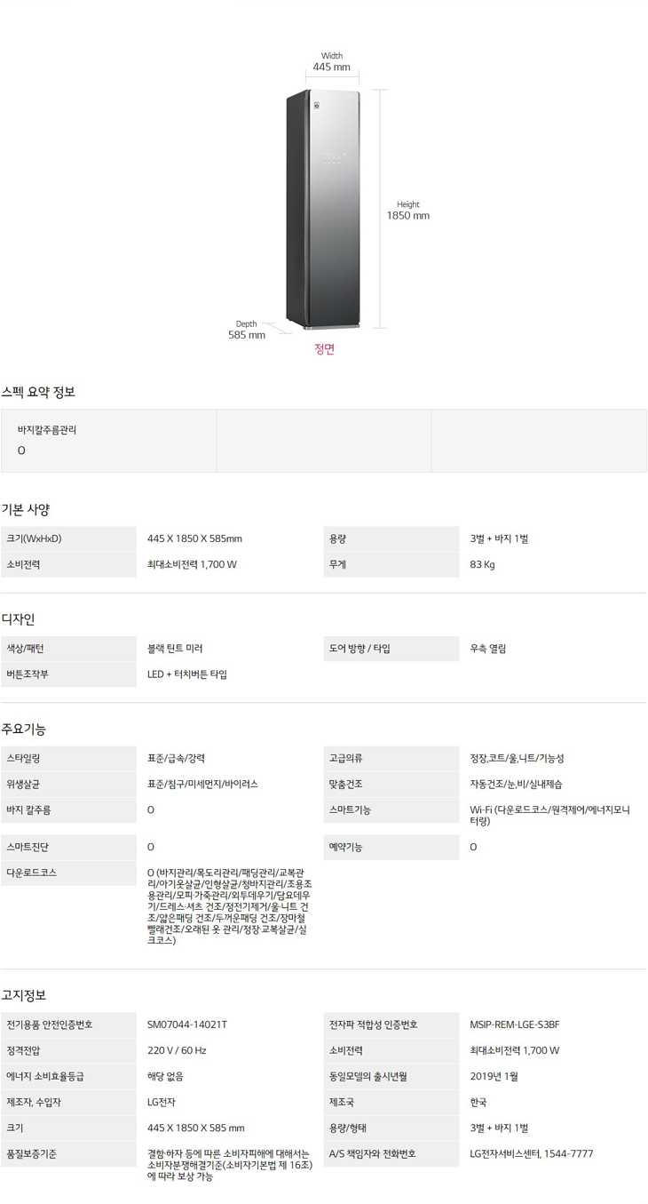 주요기능 2 : 탈취, 바지 칼주름 기능