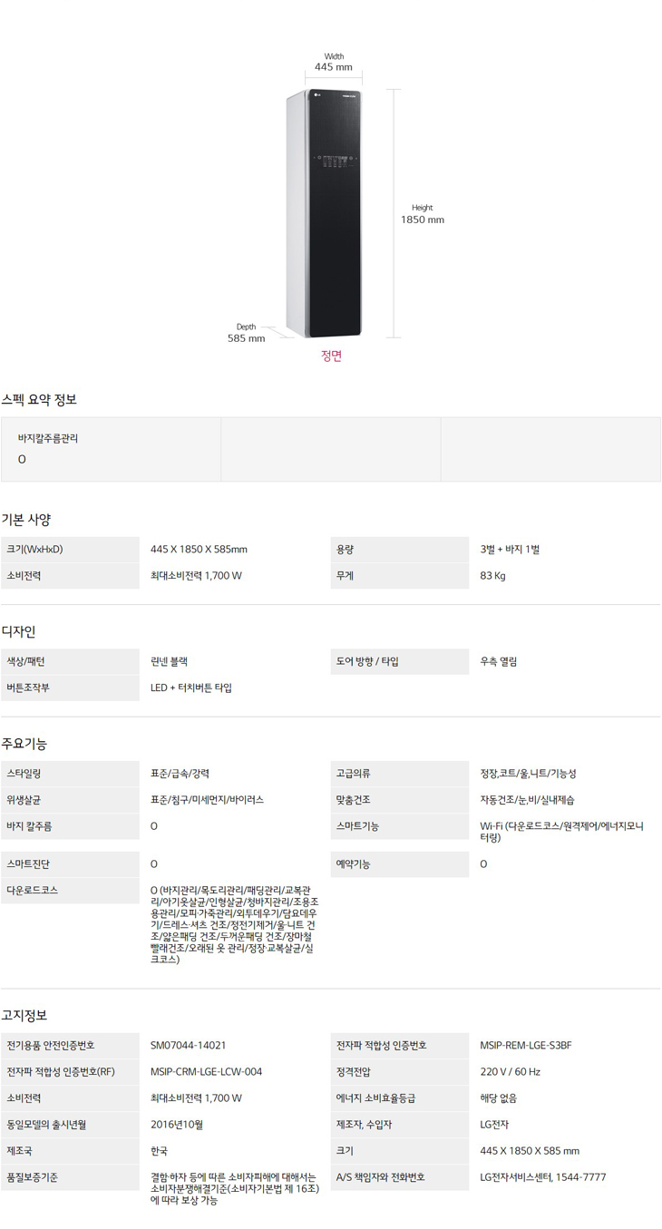 LG TROMM 스타일러 S3BF