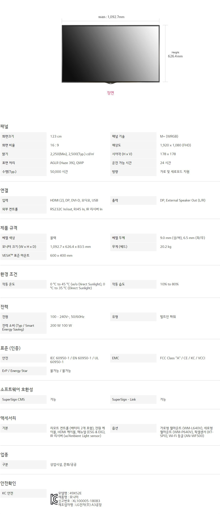LG 디지털사이니지 Special (고휘도) 49XS2E-B