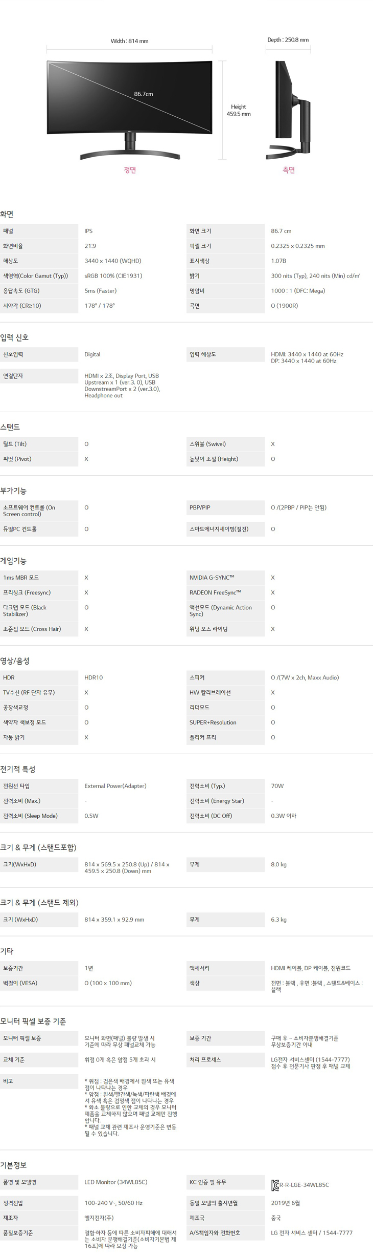 LG 울트라와이드 모니터 34WL85C