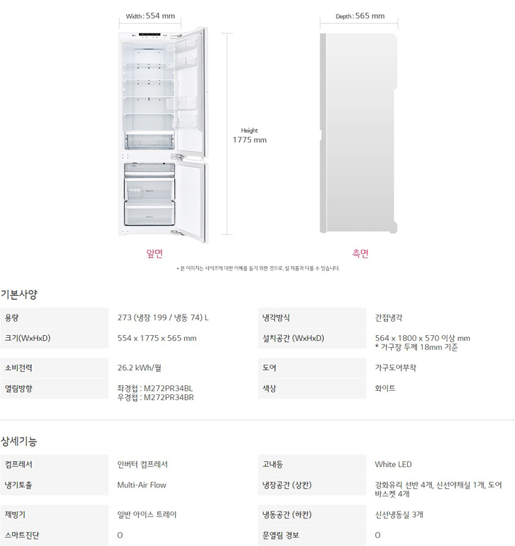 LG 콤비냉장고 R-L281BML (M272PR34BL/R)