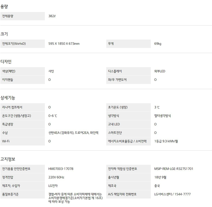 전체용량 : 382 ℓ
